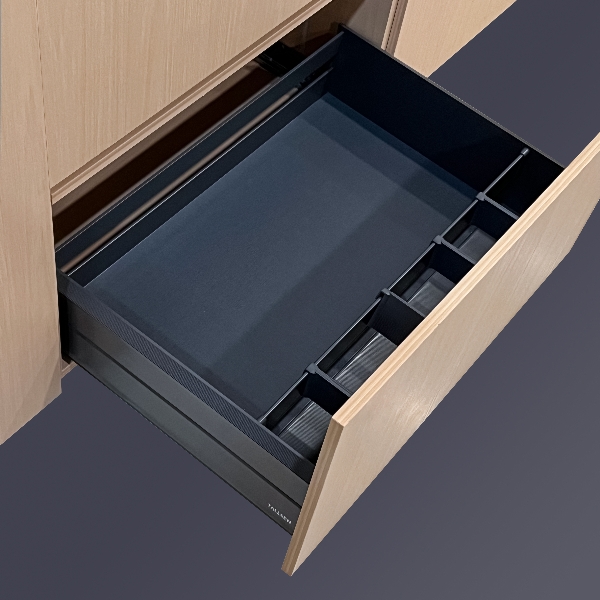 Элегантный и утонченный дизайн, который гармонично вписывается в разнообразные стили современных кухонь. Изготовленный из алюминия с изысканной текстурой и тщательной проработкой, он выходит за рамки простой функции хранения и становится эстетическим акцентом в кухонном пространстве. В тот момент, когда вы открываете ящик и видите аккуратно разложенную посуду, начинает раскрываться радость от приготовления пищи.