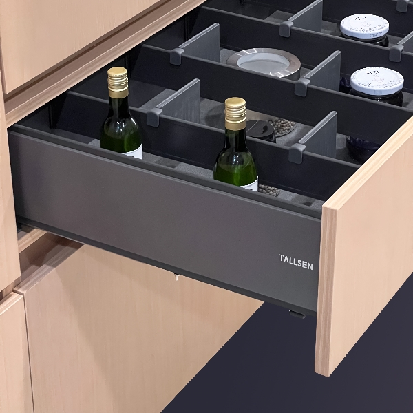Оснащенный полнораздвижными направляющими с мягким закрыванием, он обеспечивает самозакрывание и выдерживает нагрузку до 30 кг. Без труда вмещает полностью заполненные баночки со специями, обеспечивая плавную работу без заклинивания или провисания при длительном использовании.