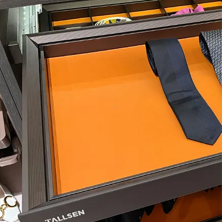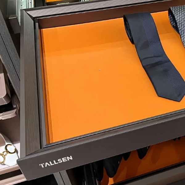 МНОГОФУНКЦИОНАЛЬНЫЙ ЯЩИК TALLSEN, изготовленный из высокопрочного магниево-алюминиевого сплава, который является здоровым и экологически чистым, долговечным. Продукт отличается изысканным качеством изготовления, а цветовая гамма соответствует цветовой системе Starba Cafe, простая, модная и щедрая. Оснащен 450-миллиметровыми бесшумными амортизирующими направляющими с полным выдвижением, он работает тихо и плавно, без заклинивания. Ширина может регулироваться до 15 мм, чтобы удовлетворить потребности различных шкафов и улучшить использование пространства гардероба. Общий плоский дизайн позволяет легко доставать крупные аксессуары.