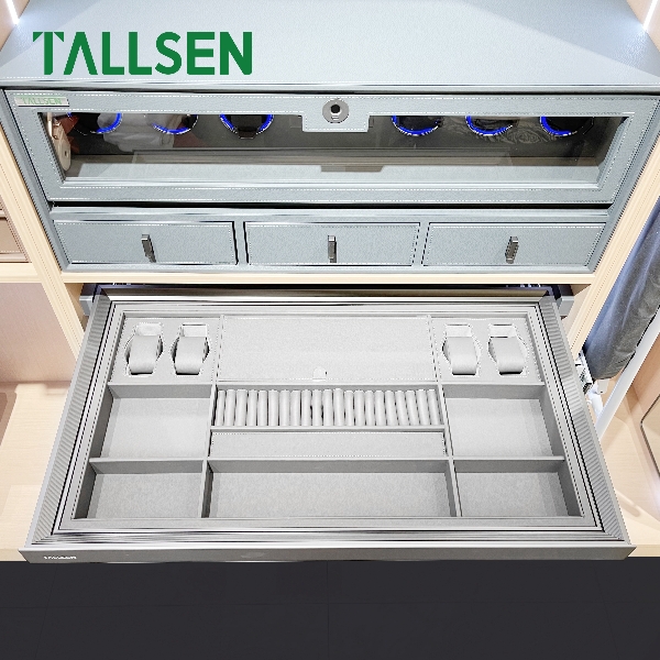Удобство — ещё одна отличительная черта Tallsen SH8125. Благодаря точным направляющим ящик легко открывается лёгким движением, что экономит силы и делает его лёгким. Будь то повседневные украшения или часто используемые документы, всё сразу видно и всегда под рукой, избавляя от необходимости постоянно что-то искать. Эта «доступность» не только повышает эффективность ежедневного использования, но и раскрывает элегантность в мелочах: когда приходит гость, спокойно откройте ящик, и аккуратно разложенные украшения станут не только проявлением вкуса, но и превратят хранение в ритуал.