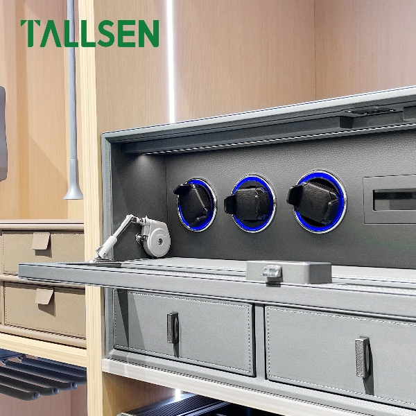 В устройстве для завода часов используется встроенный газовый пружинный механизм, обеспечивающий стабильную работу до 50 000 циклов с исключительной долговечностью. Встроенный светочувствительный светодиод включается автоматически при активации датчика, обеспечивая четкую видимость ваших часов даже в плохо освещенных шкафах, сочетая практичность с элегантностью.