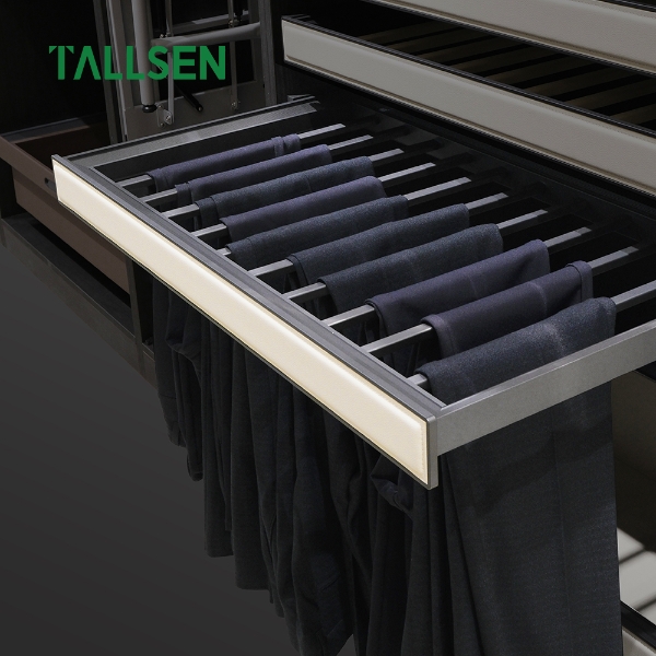 Когда речь заходит о хранении одежды, хранение брюк часто упускается из виду, хотя оно имеет решающее значение. Сложенные в стопку брюки не только мнутся, но и создают беспорядок, затрудняя доступ к ним. Вешалка для брюк TALLSEN Wardrobe Storage Hardware Vanilla White Series SH8207 с ее оригинальным дизайном и превосходным качеством переосмысливает эстетику и практичность хранения брюк, создавая аккуратный, организованный, удобный и комфортный гардероб.
