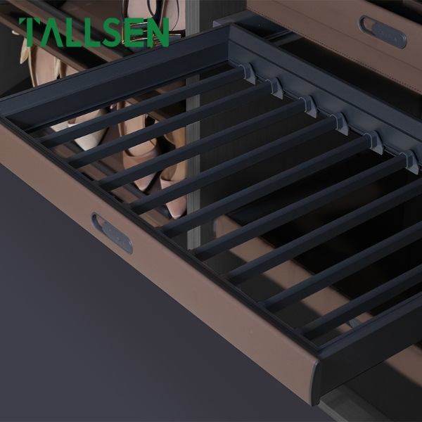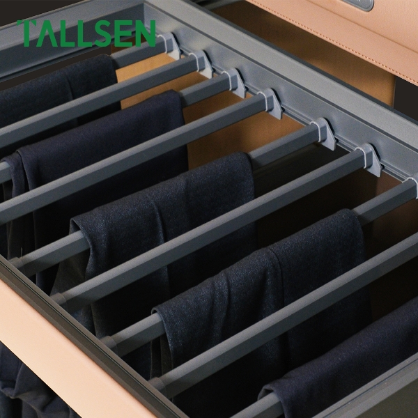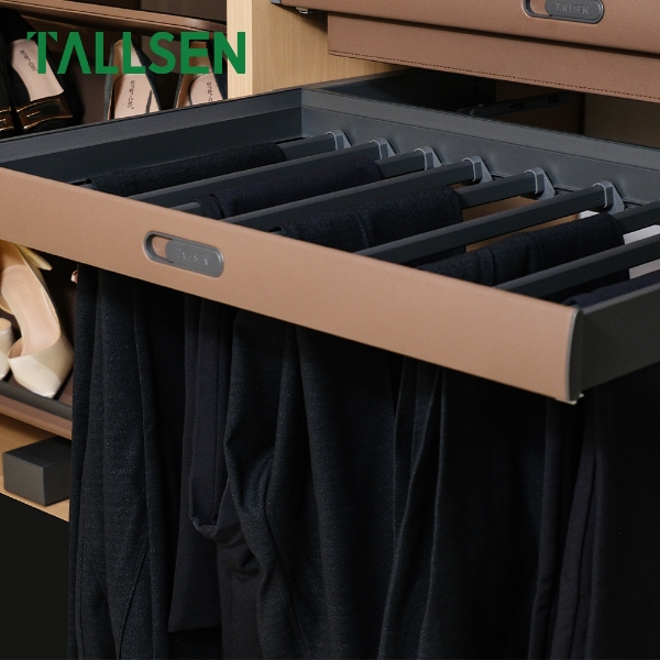 Когда речь заходит о хранении одежды, хранение брюк часто упускается из виду, хотя это очень важно. Сложенные брюки не только мнутся, но и создают беспорядок и затрудняют доступ к ним. Вешалка для брюк TALLSEN Wardrobe Storage Hardware Earth Brown Series SH8219 благодаря своему оригинальному дизайну и превосходному качеству меняет представление об эстетике и практичности хранения брюк, создавая аккуратный, организованный, удобный и комфортный гардероб.
